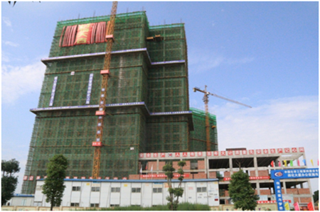 據(jù)公司四化大廈項目部現(xiàn)場執(zhí)行經(jīng)理廖華軍介紹:四化大廈項目建筑面積27720m2,分地下1層、地上20層,建筑高度92.9m。項目自2015年6月15日開工以來,在項目部施工人員的共同努力下,完成了土方工、樁基、地下室、主體結(jié)構(gòu)工程, 共完成混凝土澆筑14160m3,鋼筋安裝1485噸,施工人員投入33萬工時,在各分項驗(yàn)收過程中合格率達(dá)100%,優(yōu)良率達(dá)90%以上,得到岳陽市政府、經(jīng)開區(qū)管委會的肯定,在岳陽市文明衛(wèi)生城市、國家安全監(jiān)督檢查、國務(wù)院消費(fèi)專項檢查、湖南省質(zhì)量安全文明示范工地、建筑工程優(yōu)質(zhì)工地等各項檢查中均為優(yōu)良,受到一致好評。