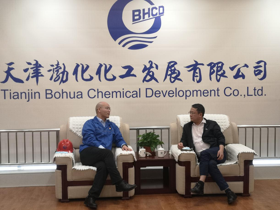 4月25日,公司黨委書記、董事長胡流芳到津拜訪渤化集團公司主要領導,并到華北公司天津渤化項目檢查指導工作。