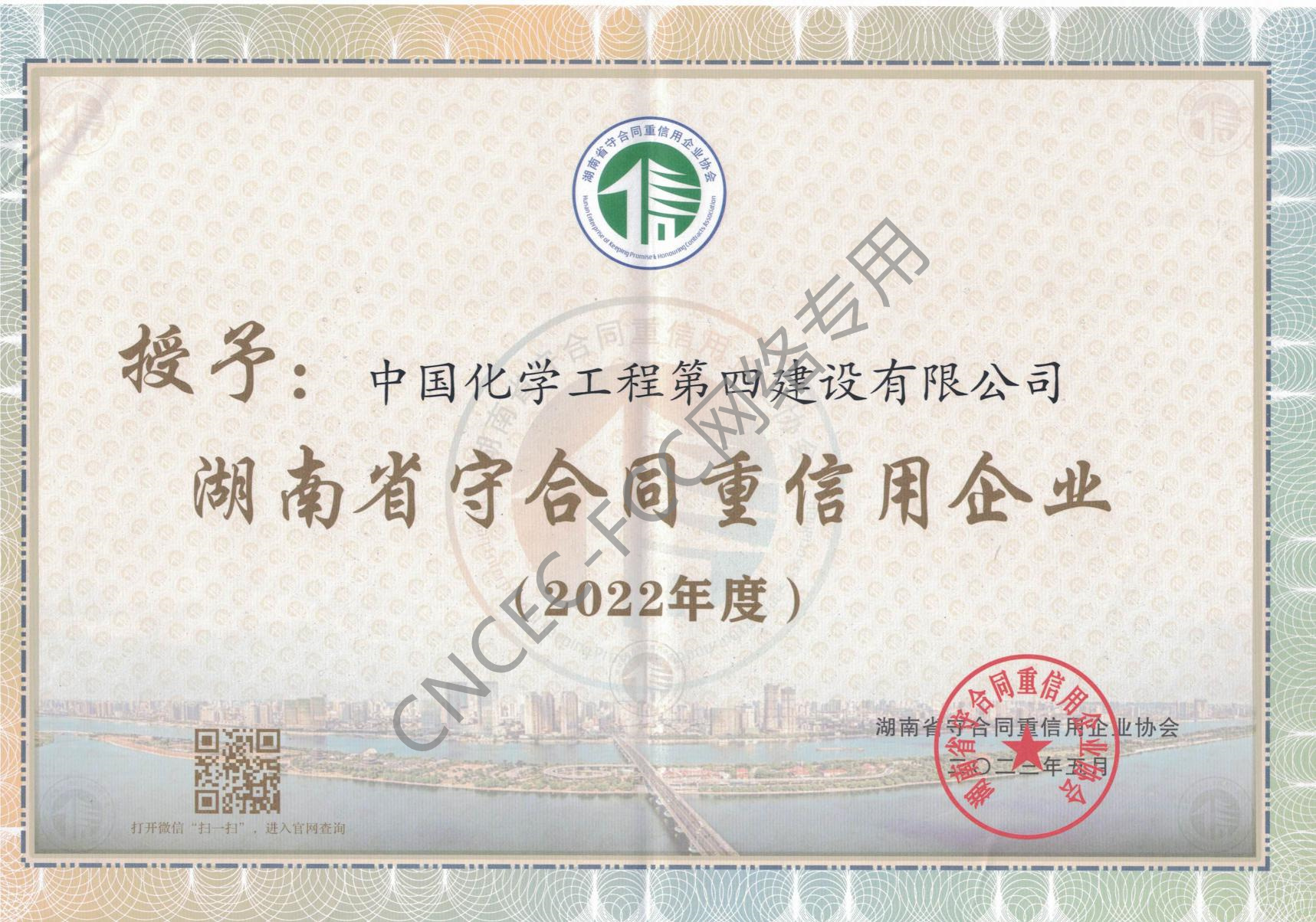 湖南省2022年度守合同重信用企業(yè)證書(shū)